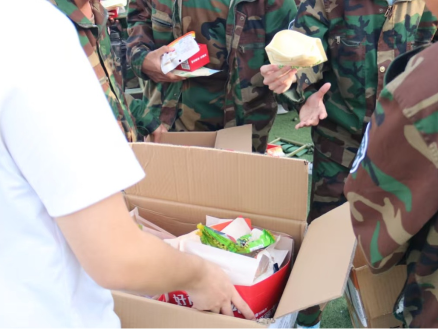 活动现场,老师们将满载心意的慰问品逐一递到新生手中,每一份礼物都承载着学院的期许。草原情奶制品裹挟着草原的醇厚底蕴,既是学院如草原般宽厚的关怀,更寄望学子们如草原儿女般,在站军姿、练队列的磨砺中涵养纯粹初心,炼就坚韧意志;好友派则成为同窗情谊的甜蜜纽带,寓意来自五湖四海的新生们从陌生走向熟悉,结下深厚友谊;饱满的坚果藏着成长的祝福,愿大家在军训中沉淀实力、强健体魄,成长为内核坚实、向阳而生的土木青年。