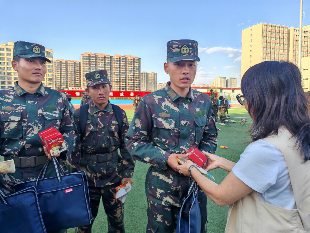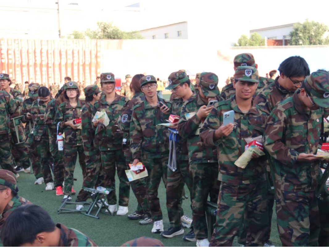 接过慰问品,新生们脸上洋溢着惊喜与感动,纷纷表示将把学院的关怀转化为训练的动力。现场,老师们还与新生亲切交流,询问大家的训练进度与适应情况,提醒同学们注意劳逸结合,在军训中磨练意志、收获成长。