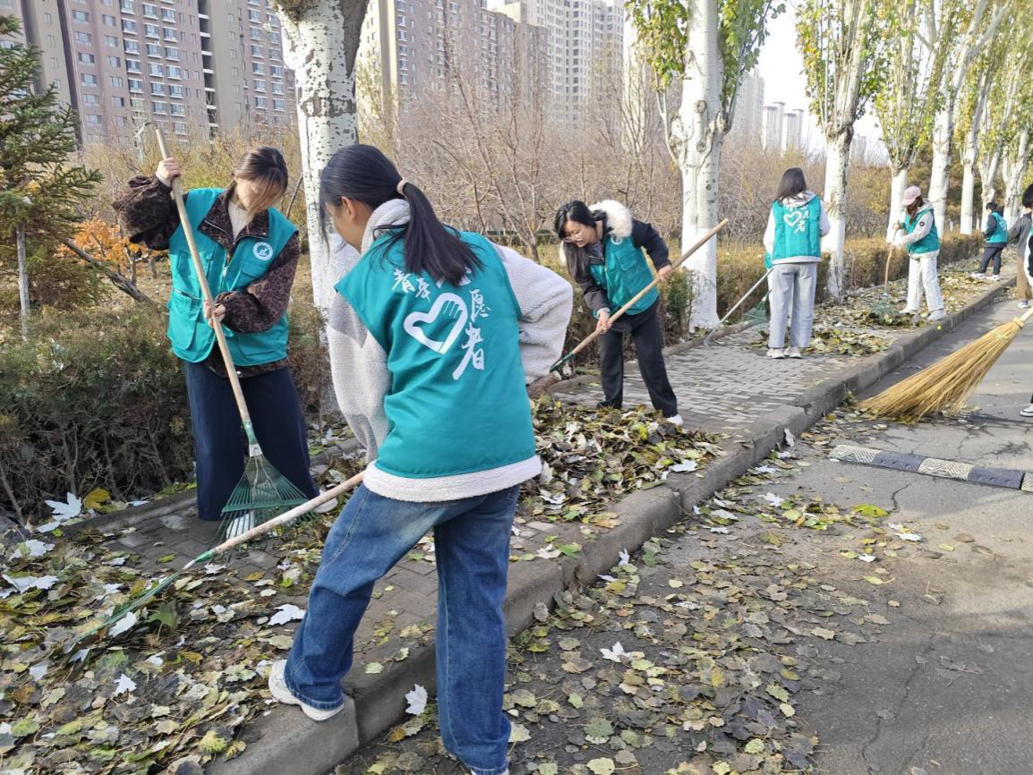 青年志愿者协会于2025年11月8日上午,在学校组织开展了“绿动金秋,扫叶同行”志愿服务活动。