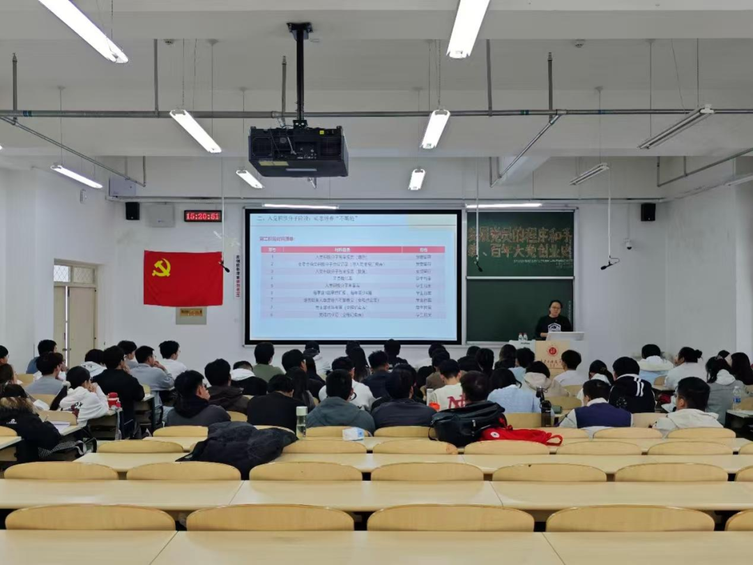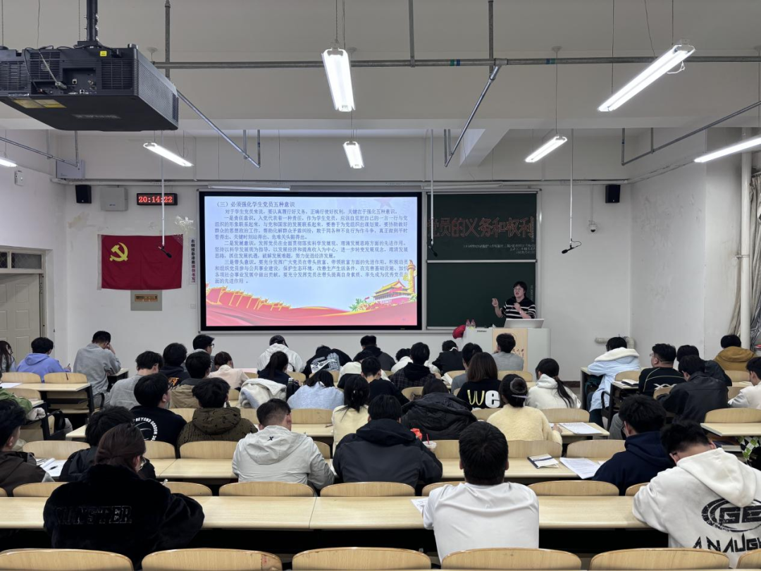 于超云老师以“党员的权利和义务”为题带领大家梳理党章的制定与完善历程,清晰展现党的理论创新与发展脉络;同时,系统阐述党员义务与权利的核心内涵及二者辩证统一关系,并结合《中国共产党党员权利保障条例》详解党员权利保障相关要求。最后,于老师强调,青年大学生要将党章思想转化为行动指南,在认真履行党员义务中彰显价值,真正把党章精神内化于心、外化于行,为党和国家事业发展及党组织建设贡献青春力量。
