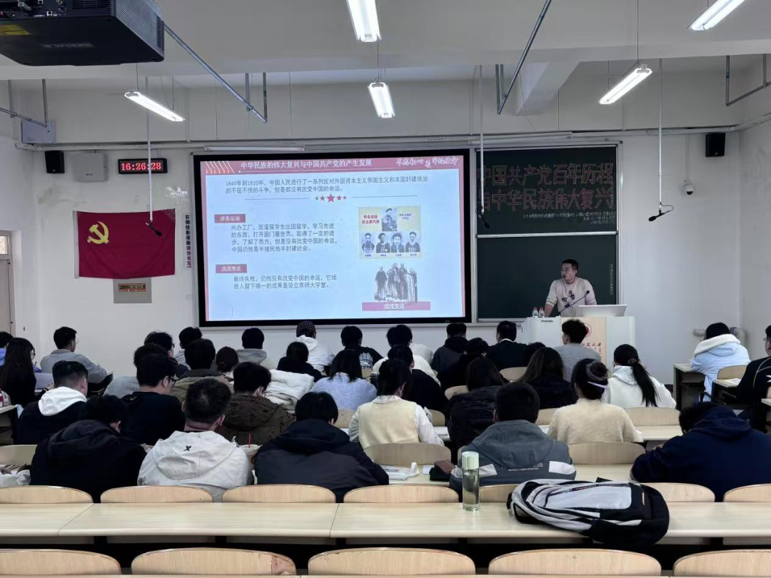 张怀玉老师围绕“中国共产党百年历程与中华民族伟大复兴”主题展开讲解,指出这是近代以来中国人民的迫切梦想;同时着重强调党成立对国家和民族命运的重大意义,并深入阐述改革开放实践与新时代使命任务之间的紧密联系。最后,张怀玉老师总结强调,入党积极分子要深刻认识到中华民族伟大复兴与中国共产党发展的内在关联,从党史学习中汲取奋进力量,在新时代主动担当作为,为实现中华民族伟大复兴的中国梦不懈奋斗。