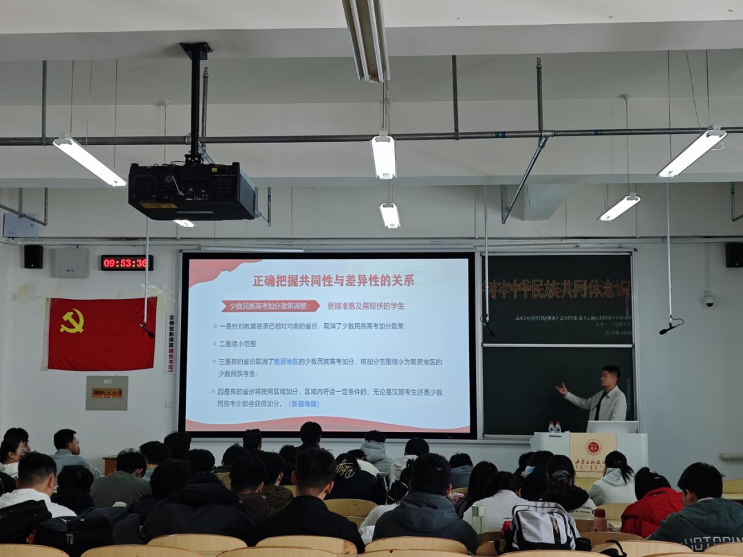 马自超老师围绕“铸牢中华民族共同体意识”主题开展讲解,指出中华民族是经千年文明浸润、共同奋斗交融形成的命运共同体,深入阐释了中华民族共同体意识作为对民族的最高认同与精神凝聚的重要意义。通过此次学习,入党积极分子进一步明晰“五个认同”是民族团结与民族复兴的重要根基,纷纷表示将主动学习民族历史、传承民族特质、厚植共同体意识,以实际行动助力民族复兴。