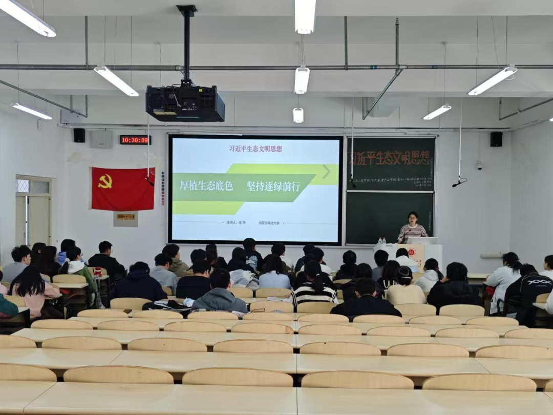 王艳老师以“习近平生态文明思想”为题开展专题讲述,她不仅系统讲解生态文明建设的理论基础,深入阐述“人与自然和谐共生”的核心理念,还带领学员学习思想的主要内容,特别强调作为内蒙古学子要主动肩负起守护北疆绿色屏障的责任。最后,王老师指出,入党积极分子应当将绿色理念融入日常行动,以实际行动为绘就美丽中国画卷贡献青春力量。