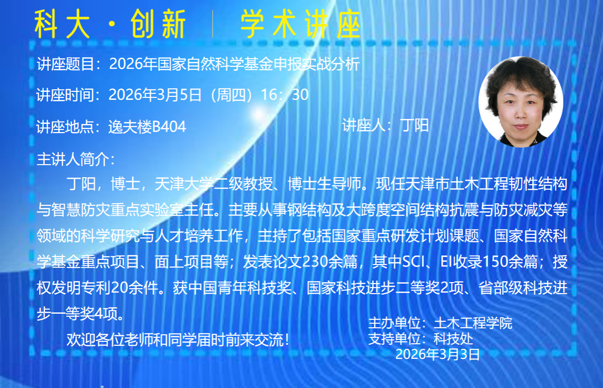 讲座题目:2026年国家自然科学基金申报实战分析