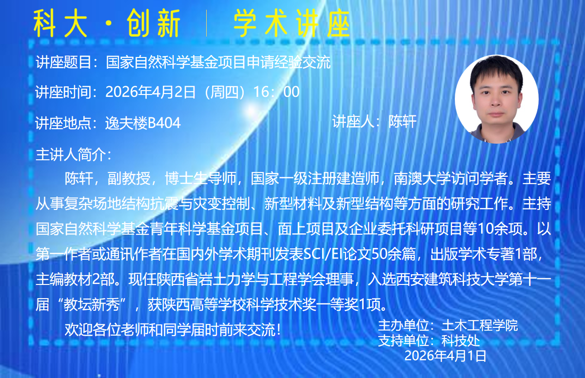 讲座题目:国家自然科学基金项目申请经验交流